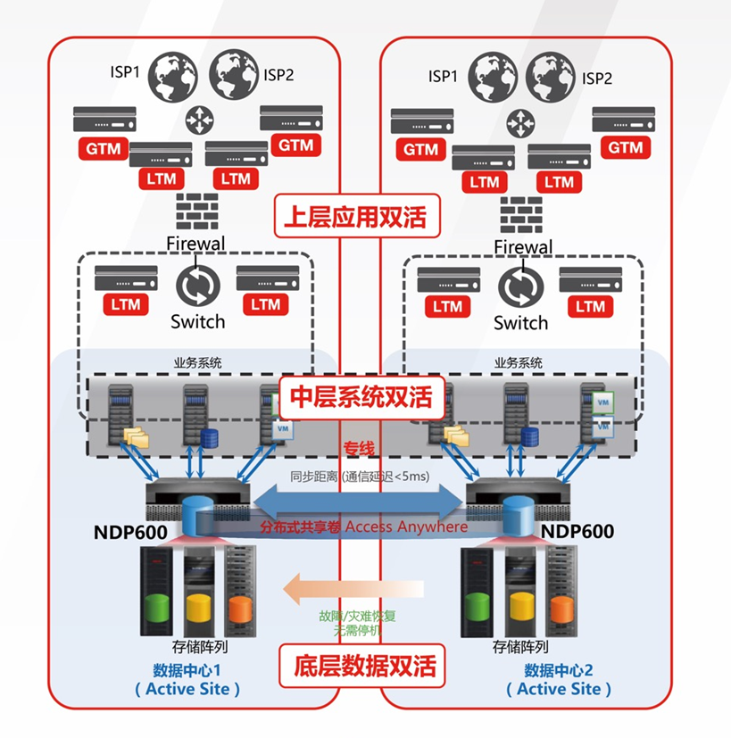 通過NDP600集中存儲的雙活架構,實現(xiàn)底層數(shù)據(jù)的兩端一致性